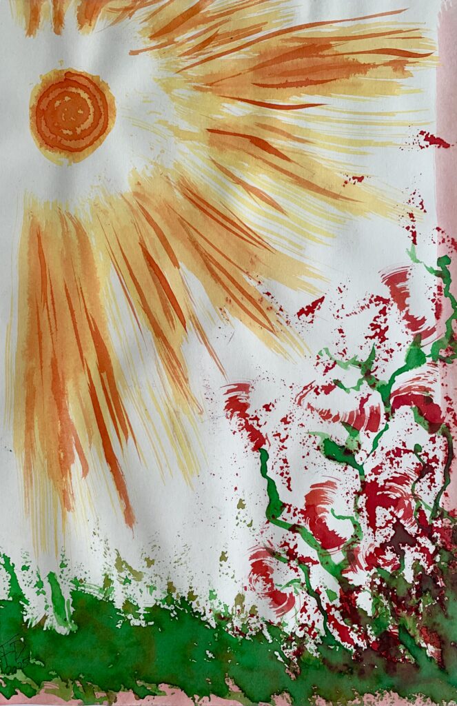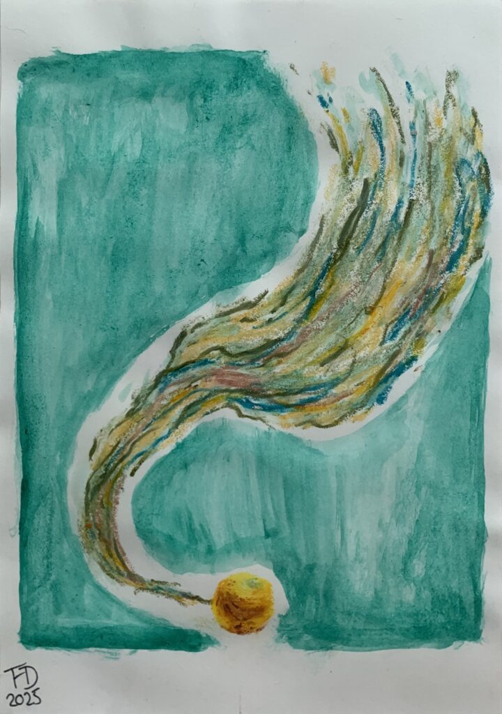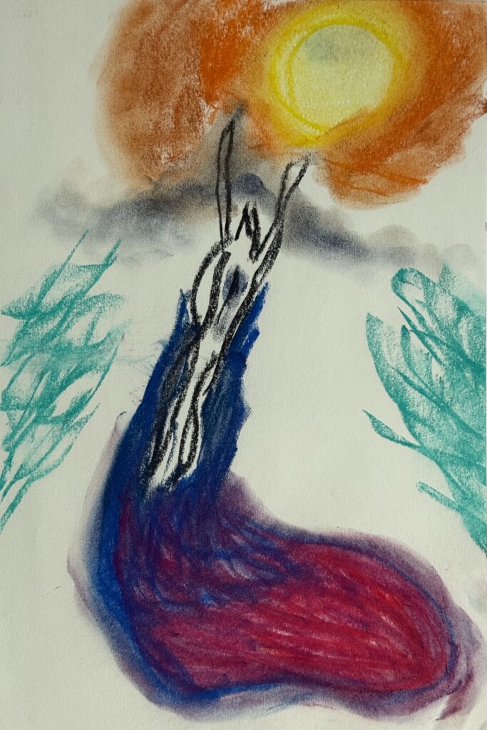 'De zonbron' - 20,5 x 12,5 cm - 2025 - aquarelkrijt