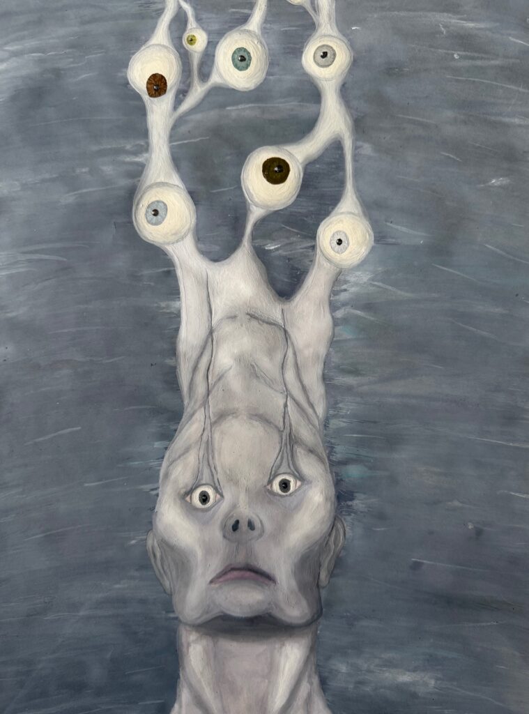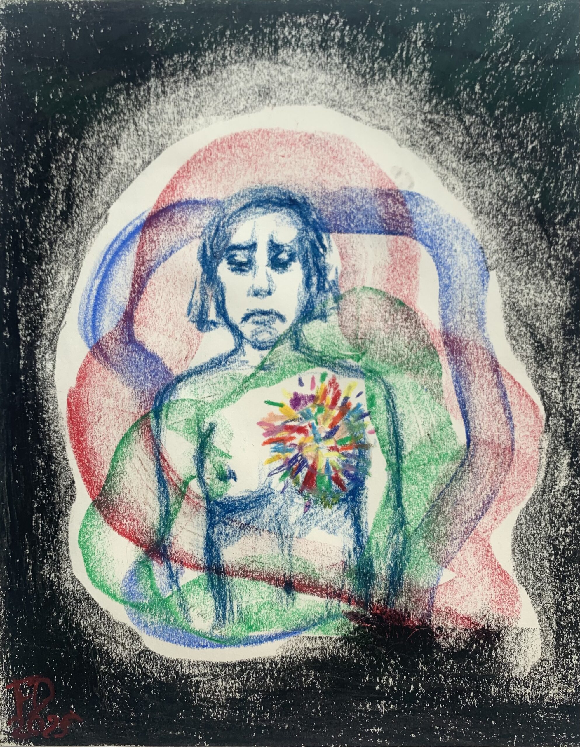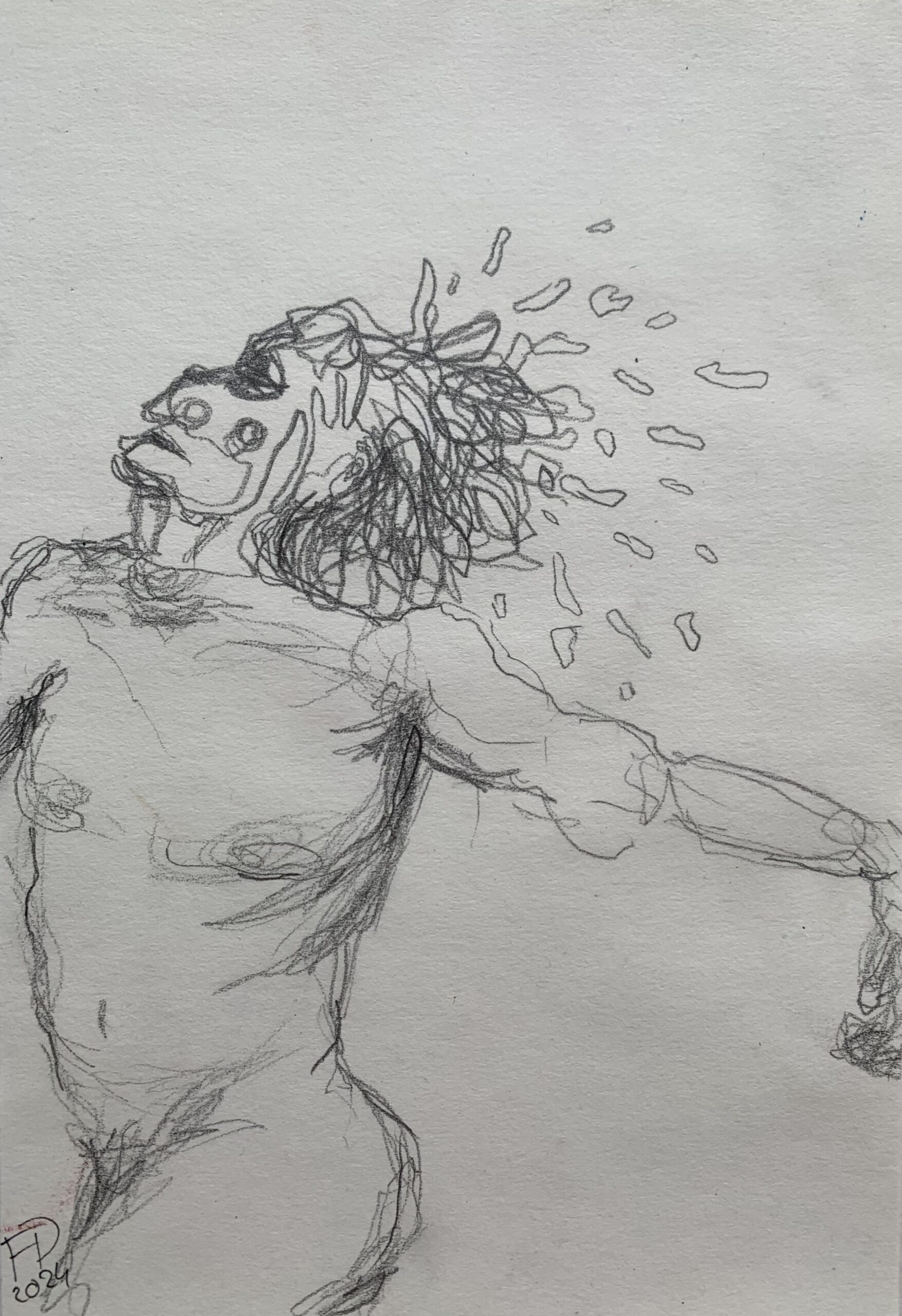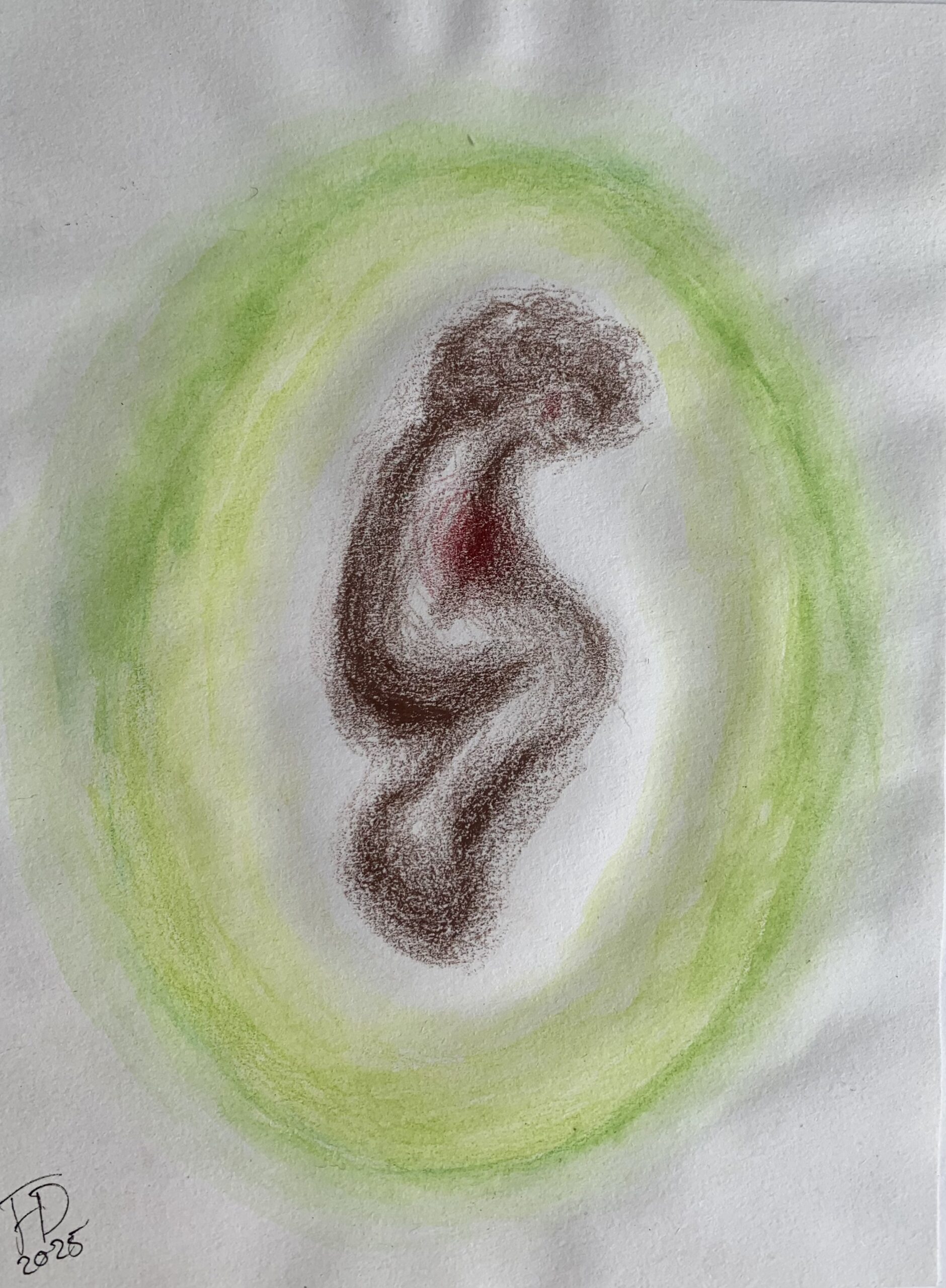 'Zwevend lichaam' - 29,5 x 21 cm - 2025 - oliepastelkrijt