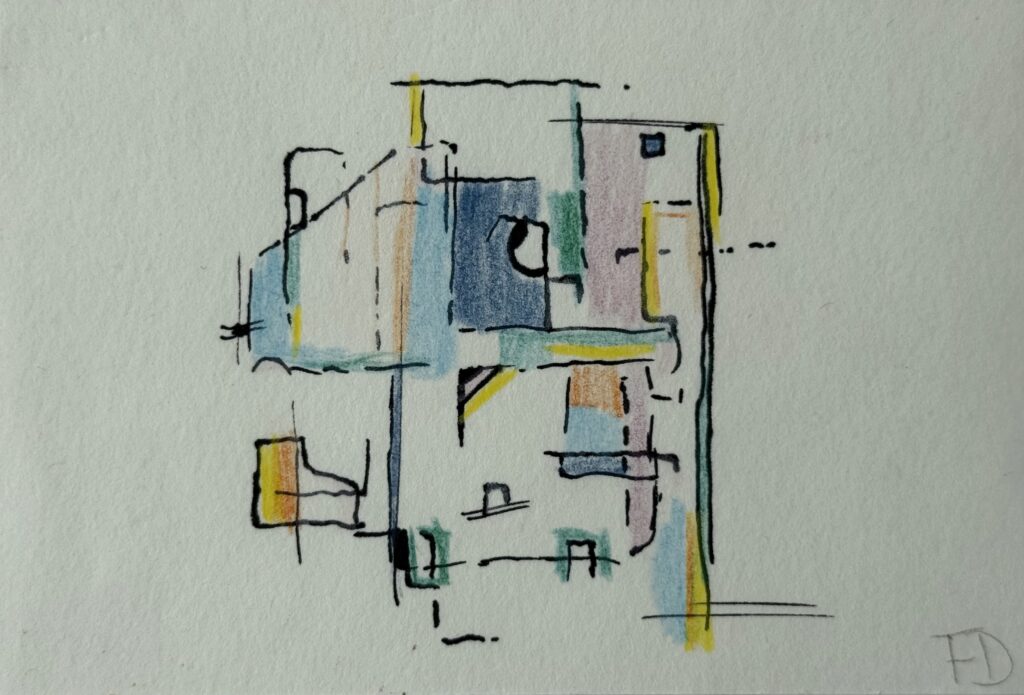 'Abstractietje' - 9 x 13 cm - 2022 - pen & kleurpotlood