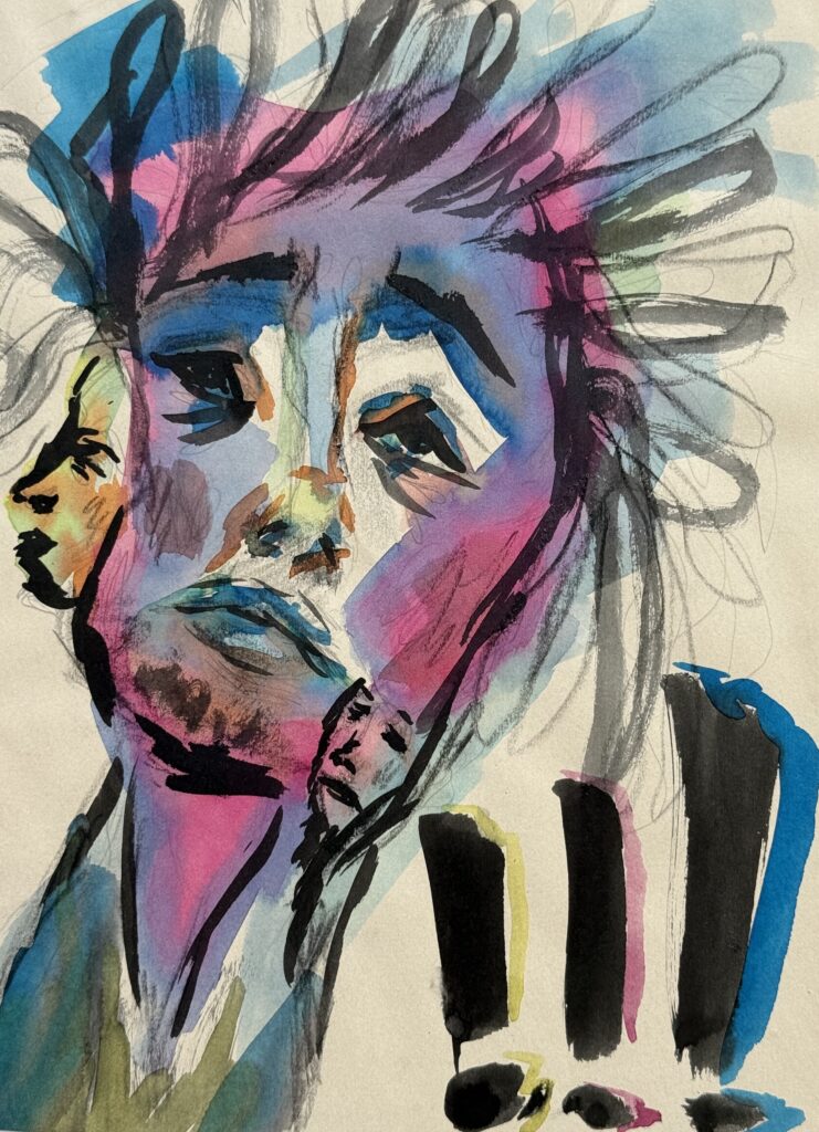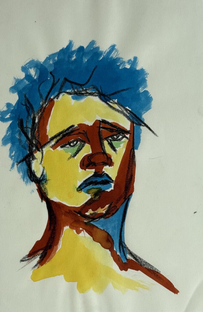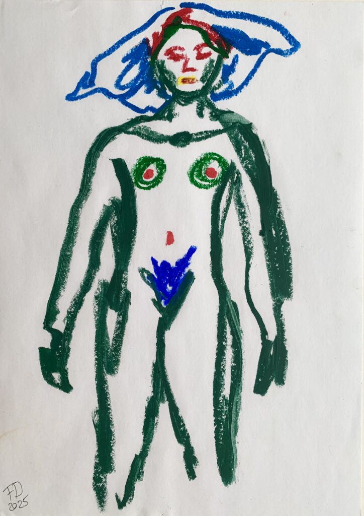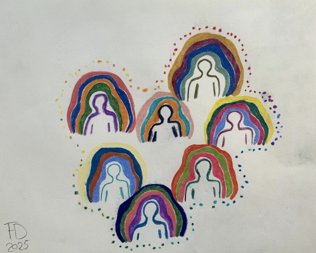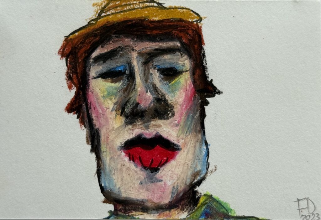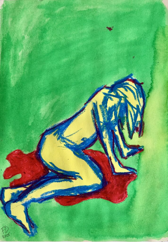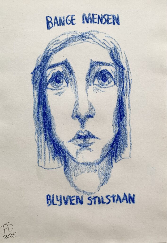 'Bange mensen blijven stilstaan' - 21 x 14,5 cm -2025 - aquarelkrijt (Verkocht)