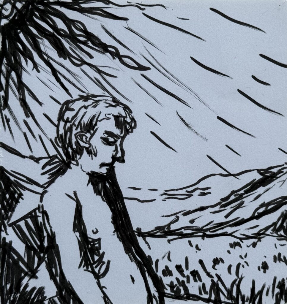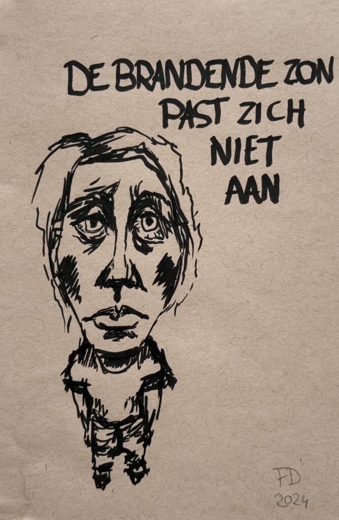 'De brandende zon past zich niet aan' - 20,5 x 13,5 cm - 2024 - stift