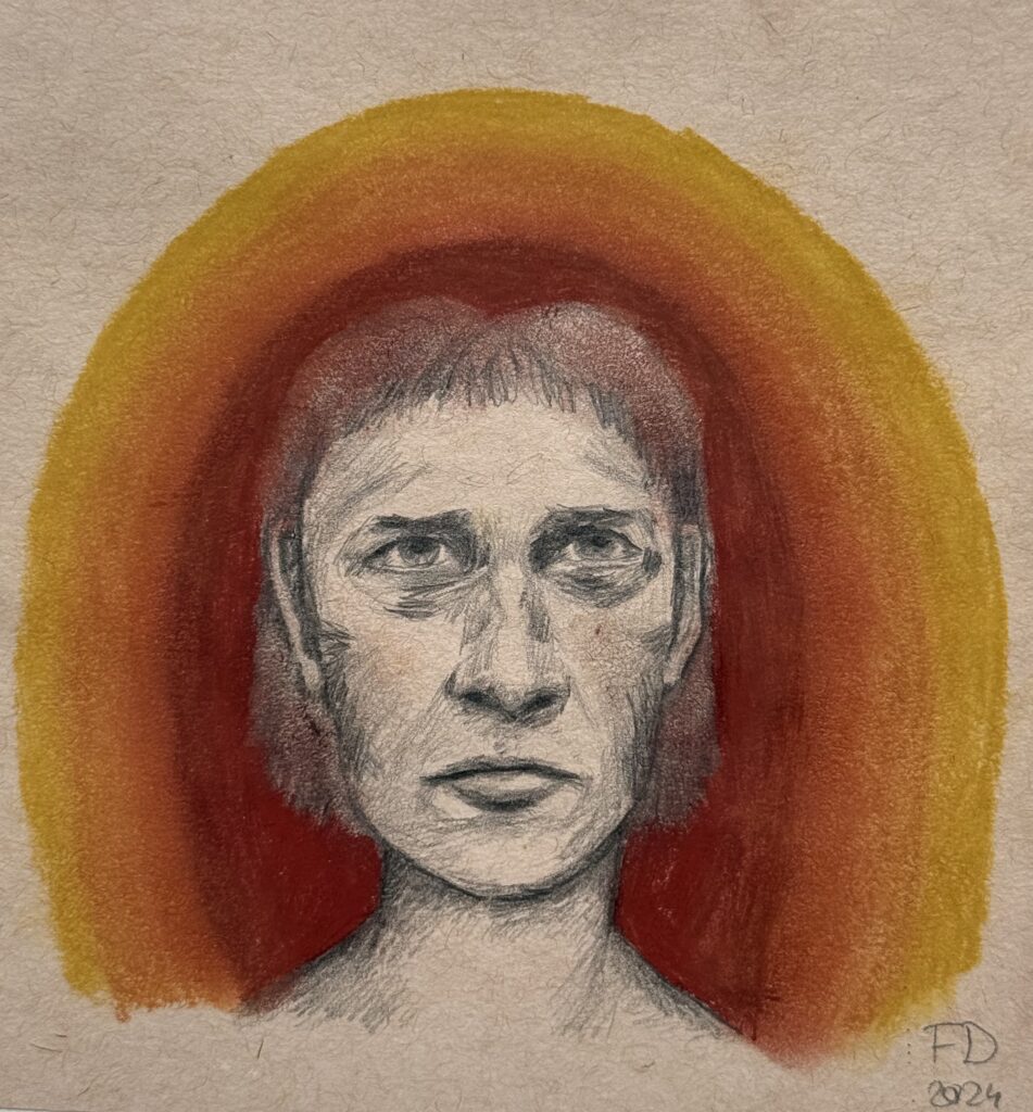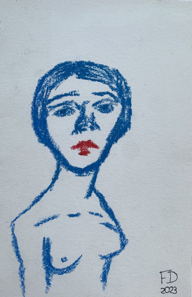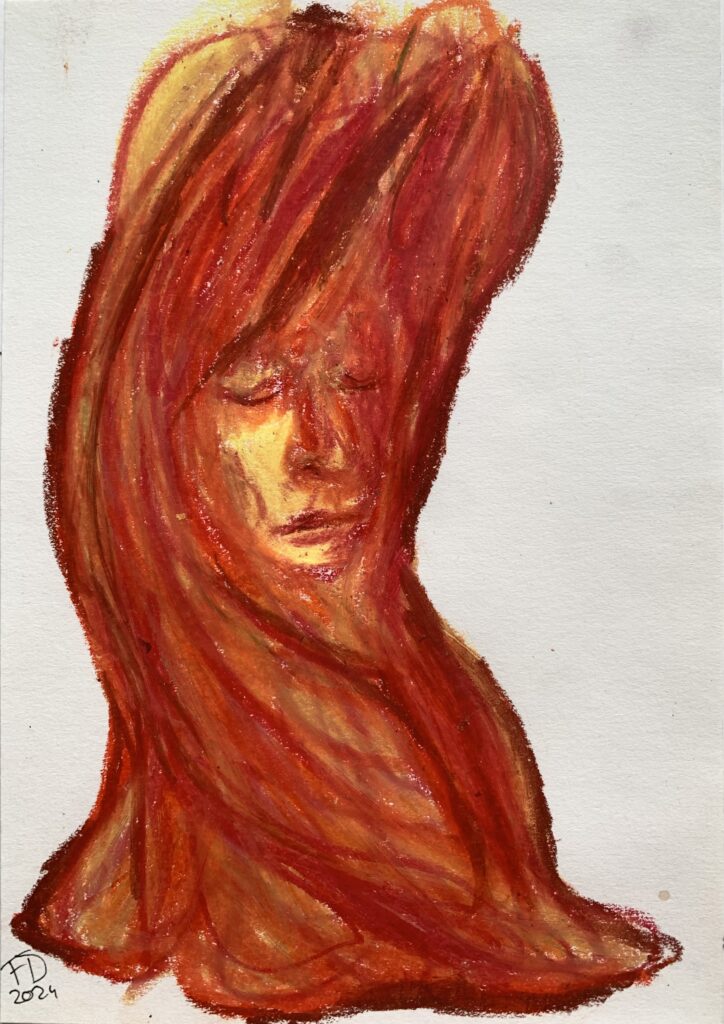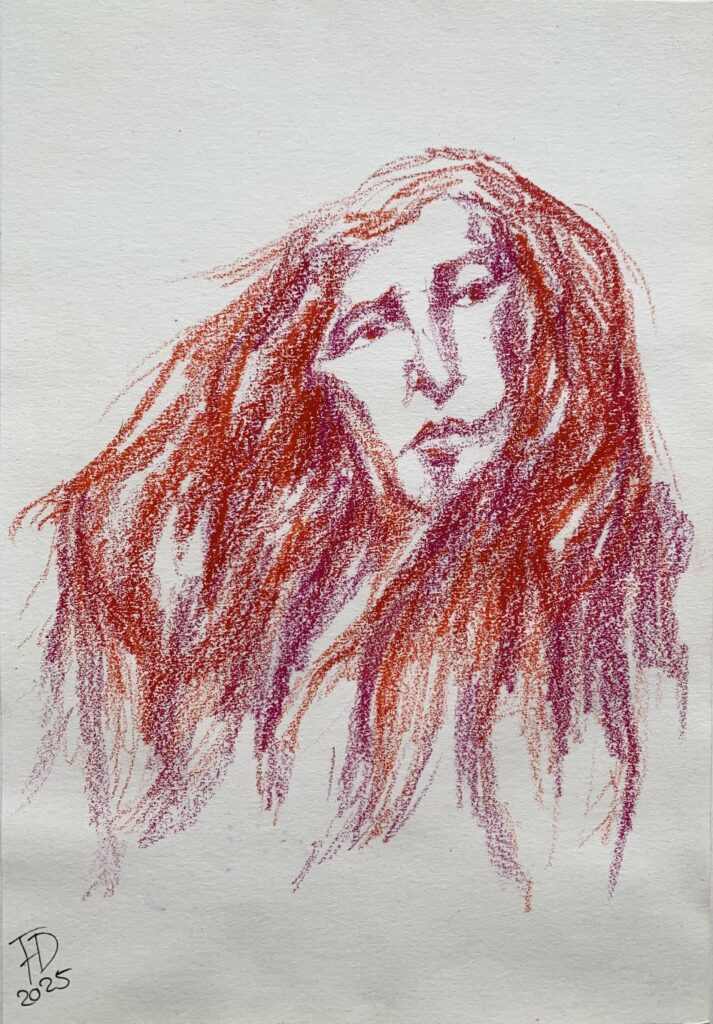 'De vrouw met lang haar' - 21 x 14,5 cm - 2025 - aquarelkrijt