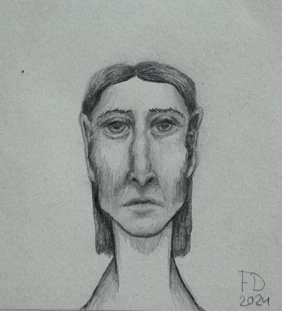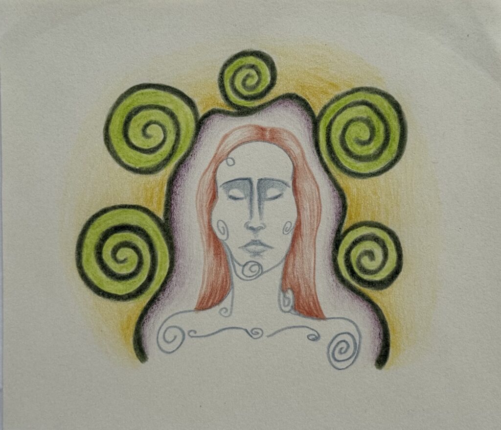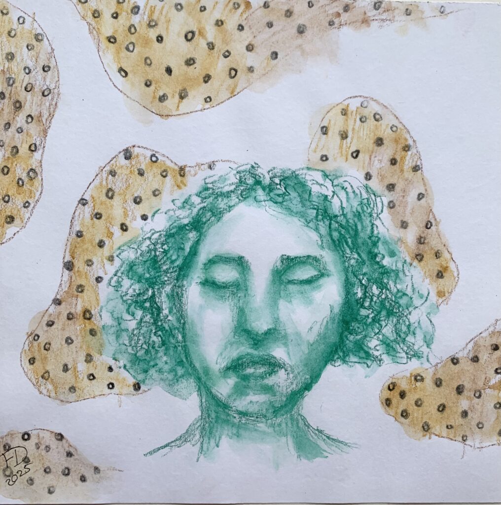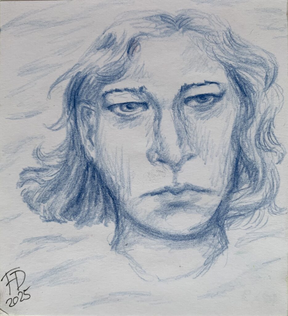 'De vrouw met lang haar' - 21 x 14,5 cm - 2025 - aquarelkrijt