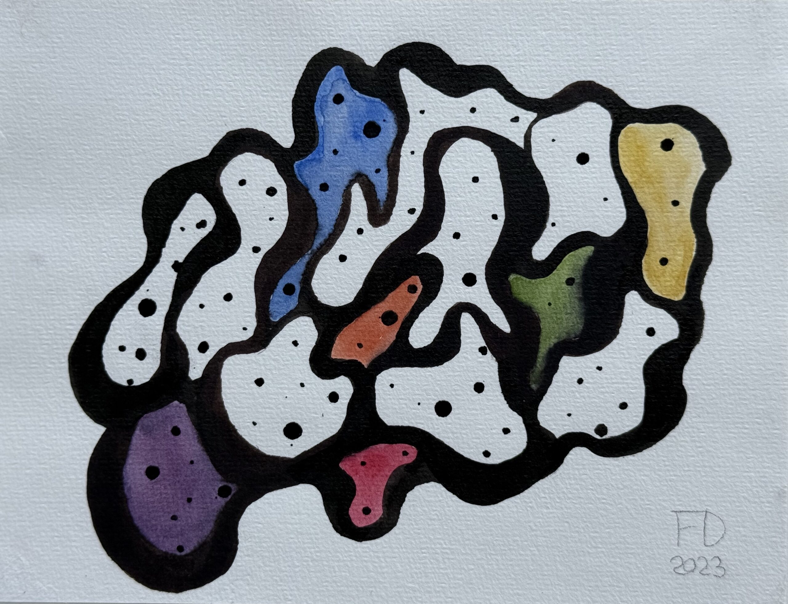 'Microbieel leven' - 14 x 18,5 cm - 2023 - Oost-Indische inkt & waterverf