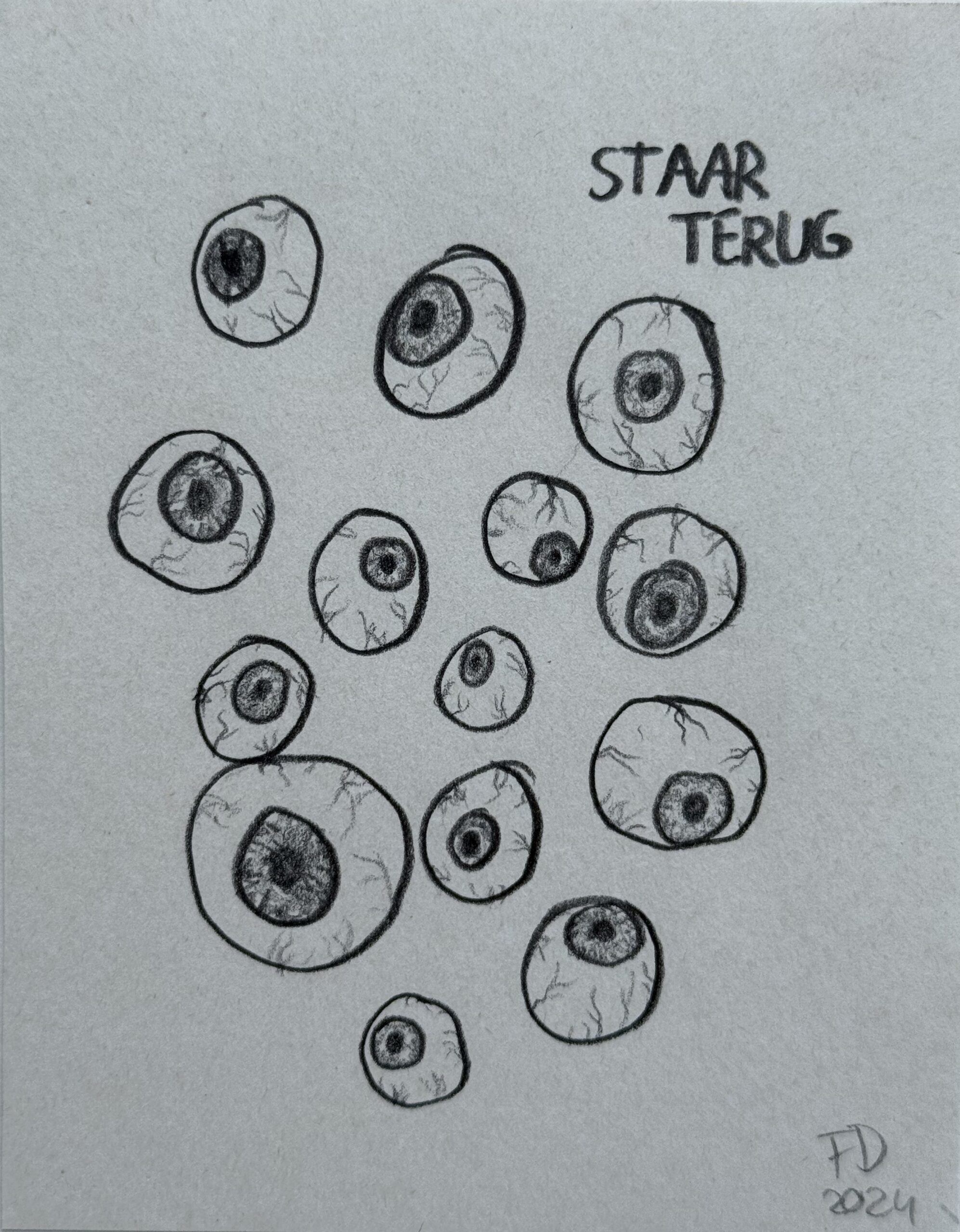 'Staar terug' - 12 x 9,5 cm - 2024 - grafietpotlood (Verkocht)