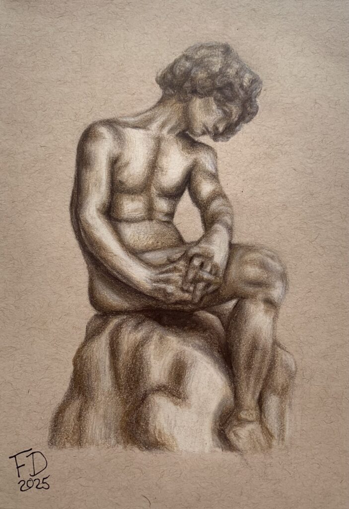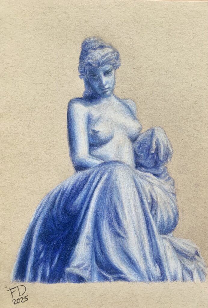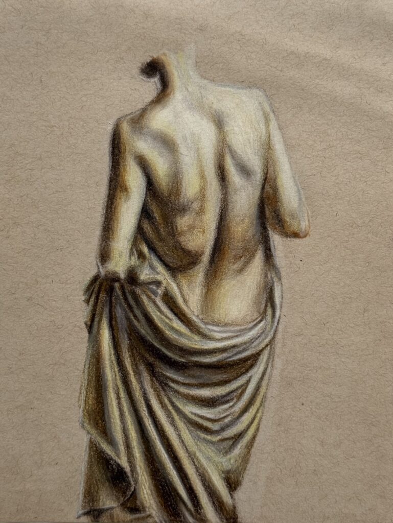 'Studie standbeeld' - 19 x 14,5 cm - 2024 - kleurpotlood (Verkocht)