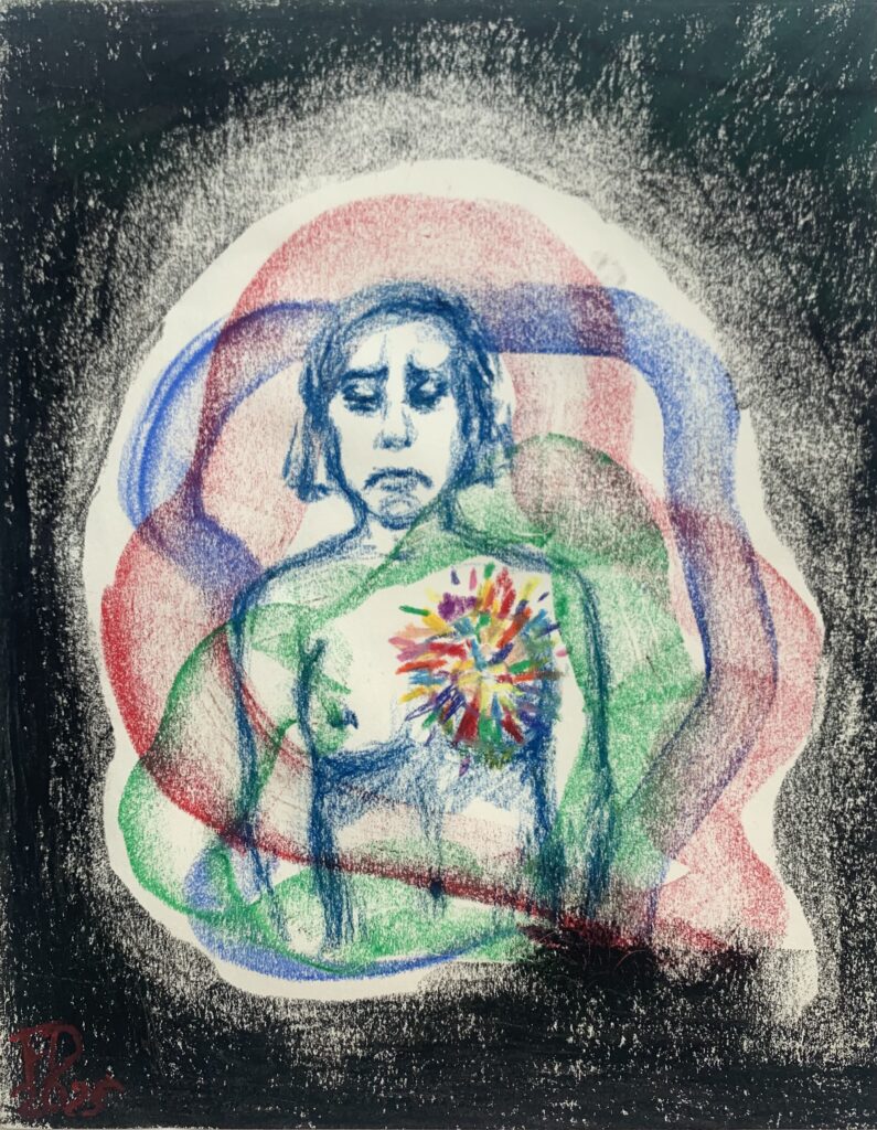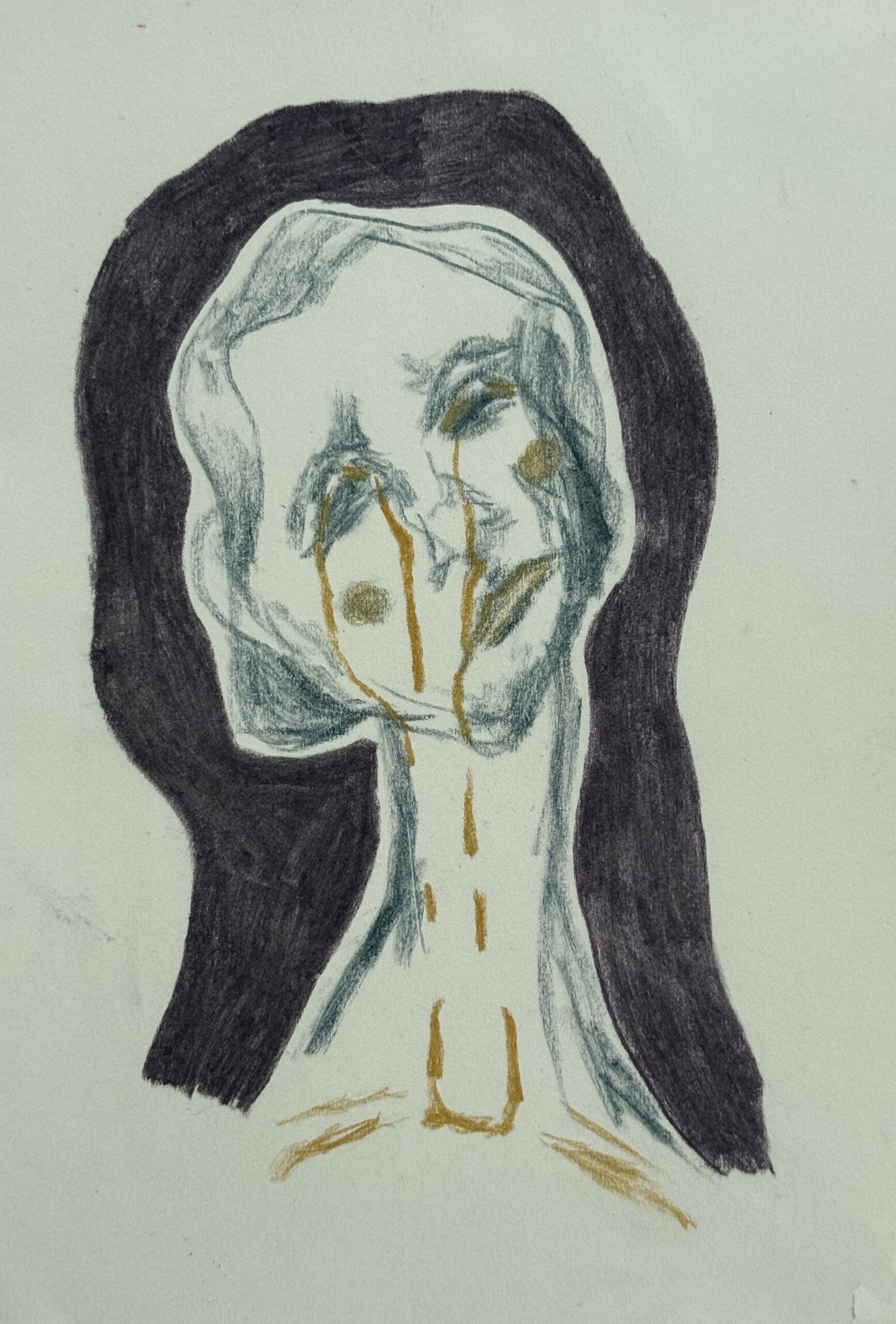 'Druppels verdriet' 14 x 20 cm - 2025 - oliepastelkrijt, pen & stift