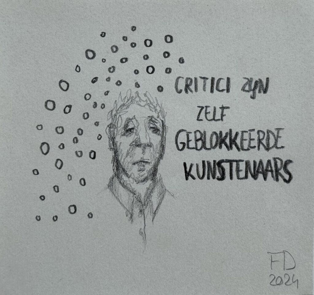 'Critici zijn zelf geblokkeerde kunstenaars' - 10 x 10,5 cm - 2024 (Verkocht)