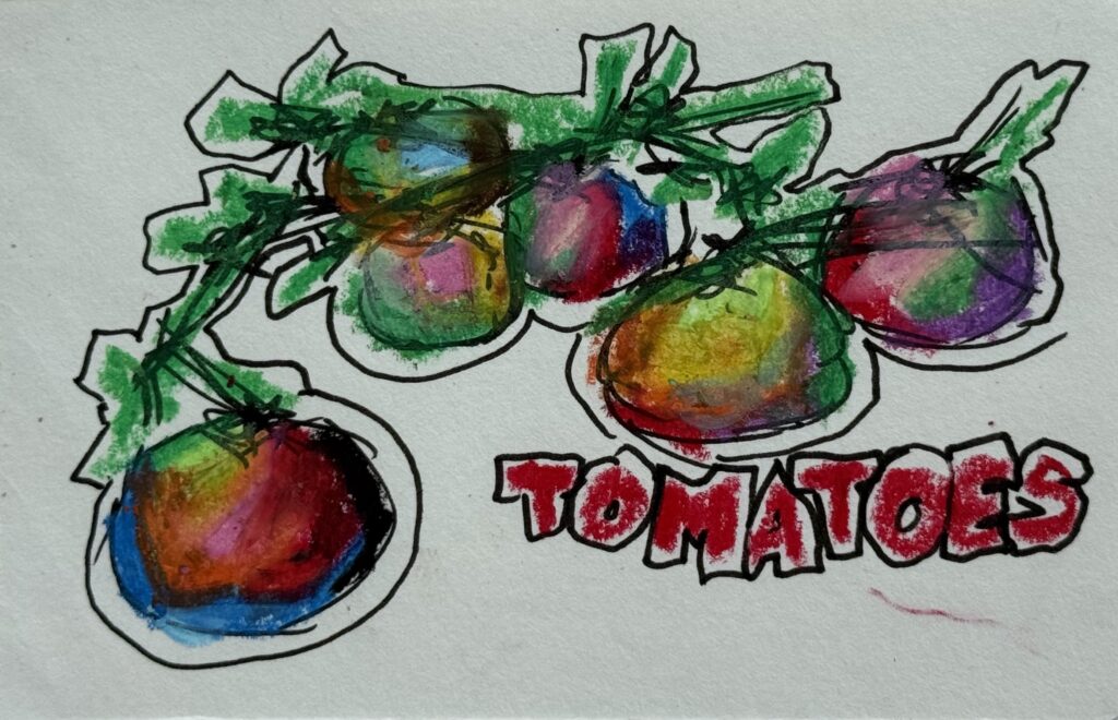 'Tomatoes' - 8,5 x 13,5 cm - 2022 - oliepastelkrijt & stift