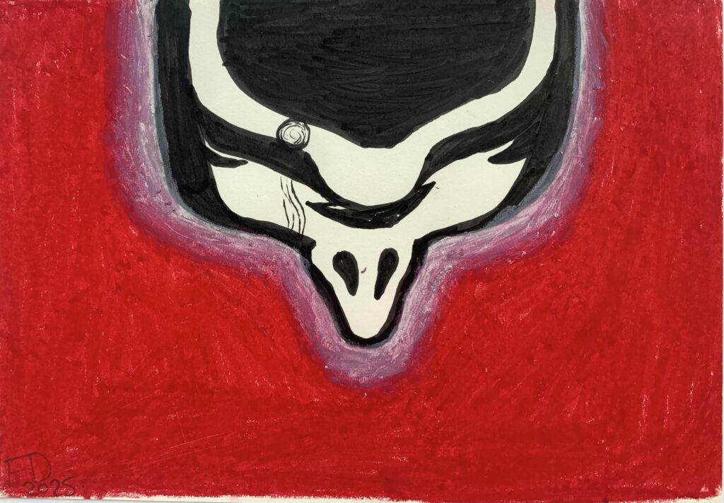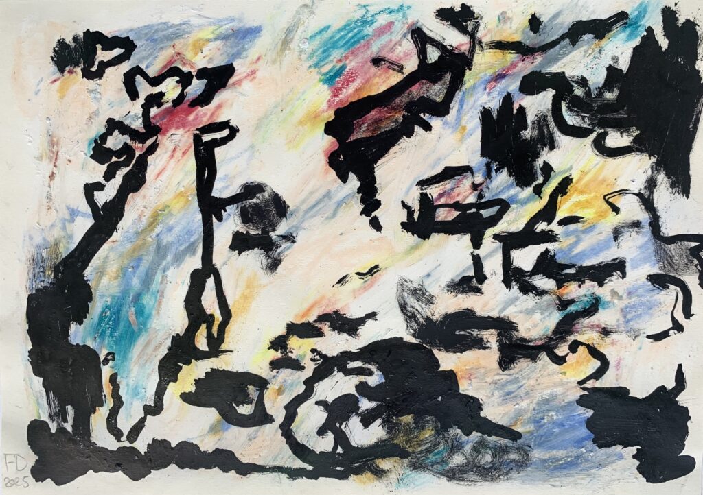 'Doorgelekt' - 27,5 x 19,5 cm - 2025 - ecoline & oliepastelkrijt