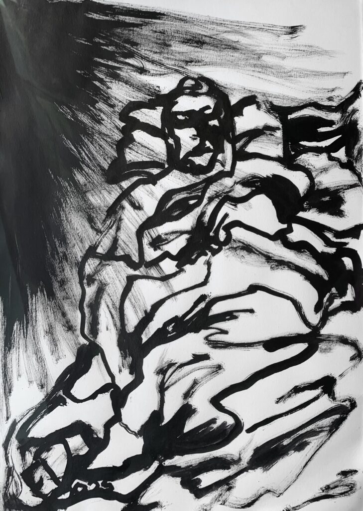 'Luister toch..' 27,5 x 20 cm - 2021 - ecocline, Oost-Indische inkt & houtskool