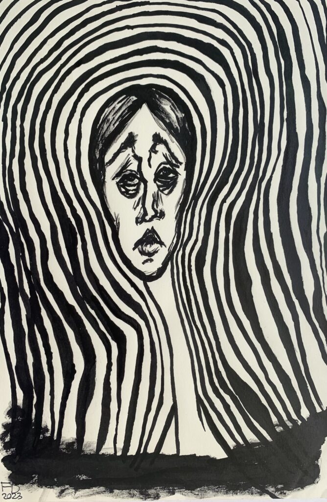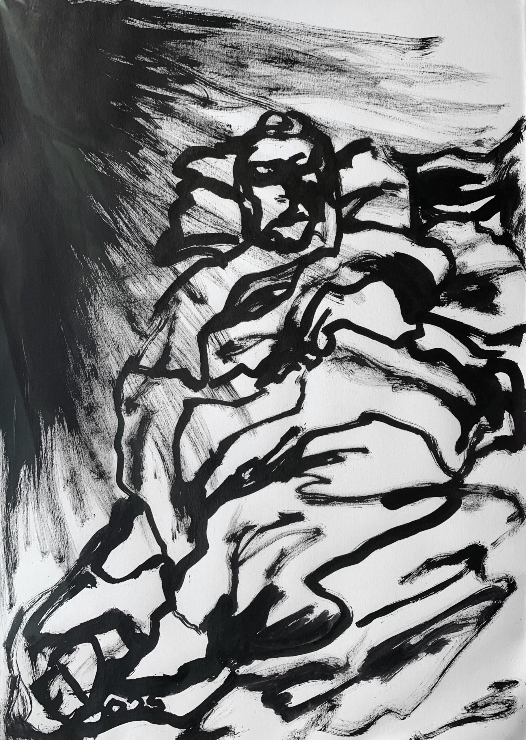 'Geen uitweg' - 29,5 x 19,5 cm - 2023 - Oost-Indische inkt