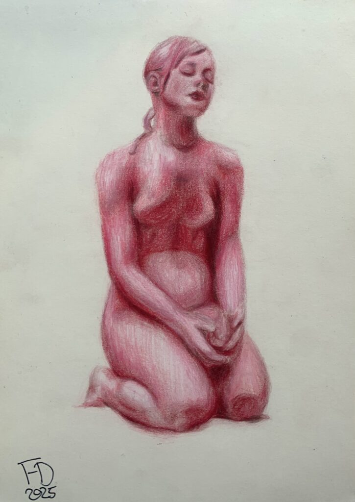 'Studie van een zittende vrouw' - 20 x 14 cm - 2025 - kleurpotlood (Verkocht)