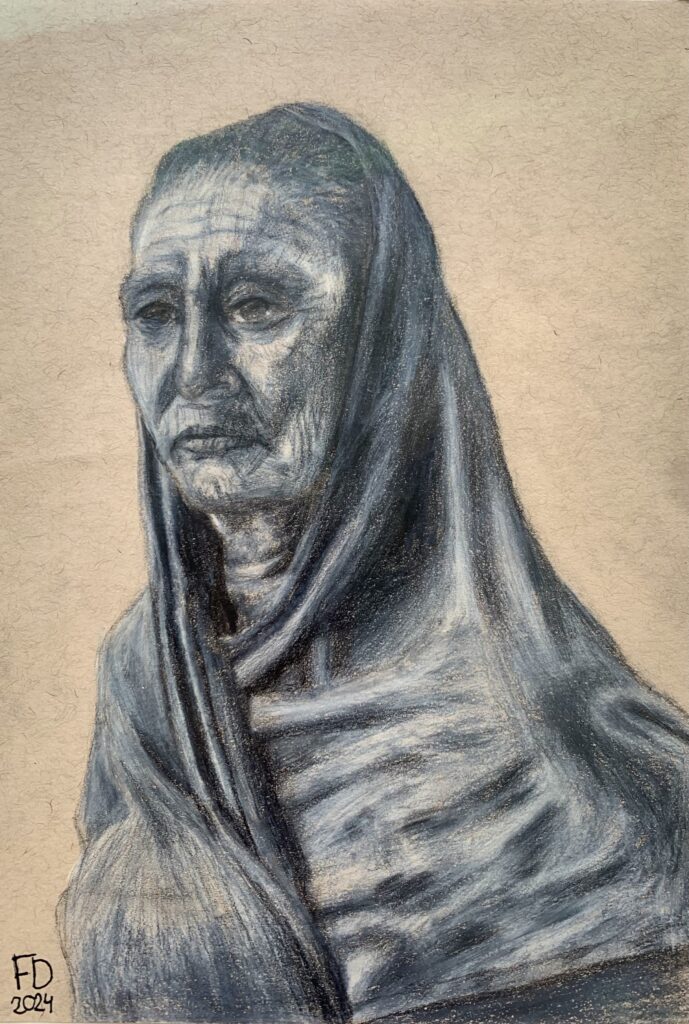 'Studie van een oude vrouw' - 21,5 x 15 cm - 2024 - grafietpotlood & kleurpotlood