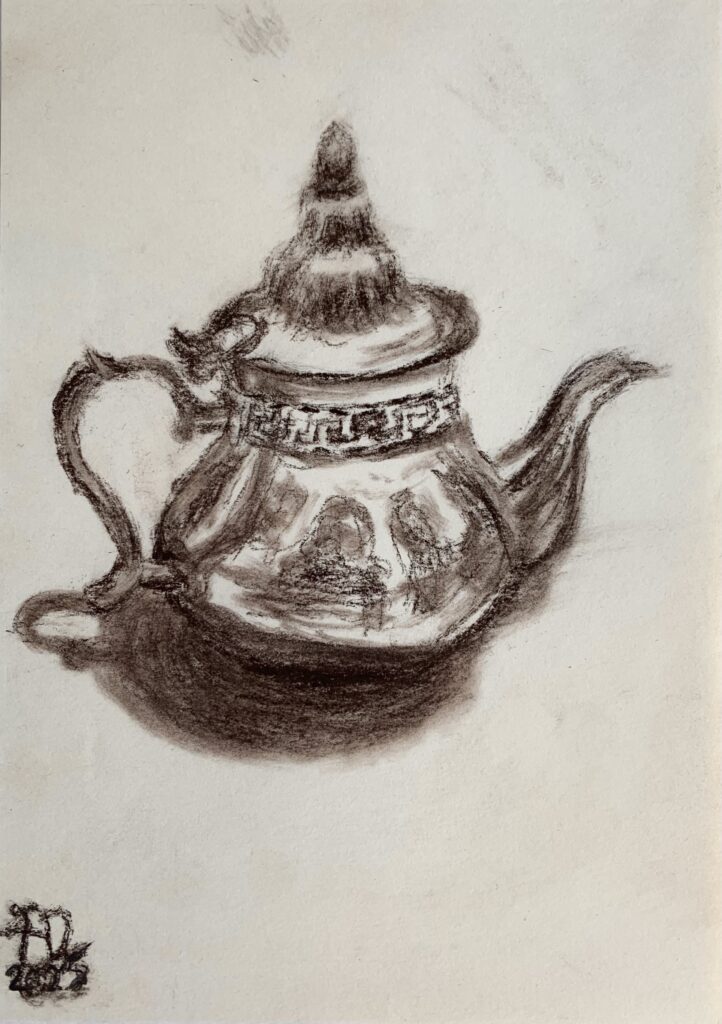 'Thee en gezelschap' - 18 x 12,5 cm - 2025 - pastelkrijt