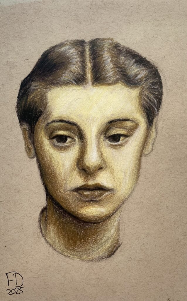 'Studie van een jonge vrouw' - 20,5 x 13 cm - 2025 - kleurpotlood