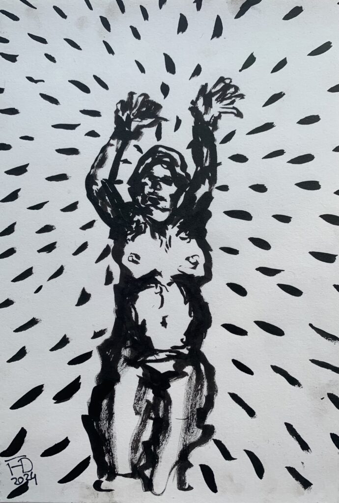 'Met dansen beweeg je energie' - 21 x 14 cm - 2024 - Oost-Indische inkt