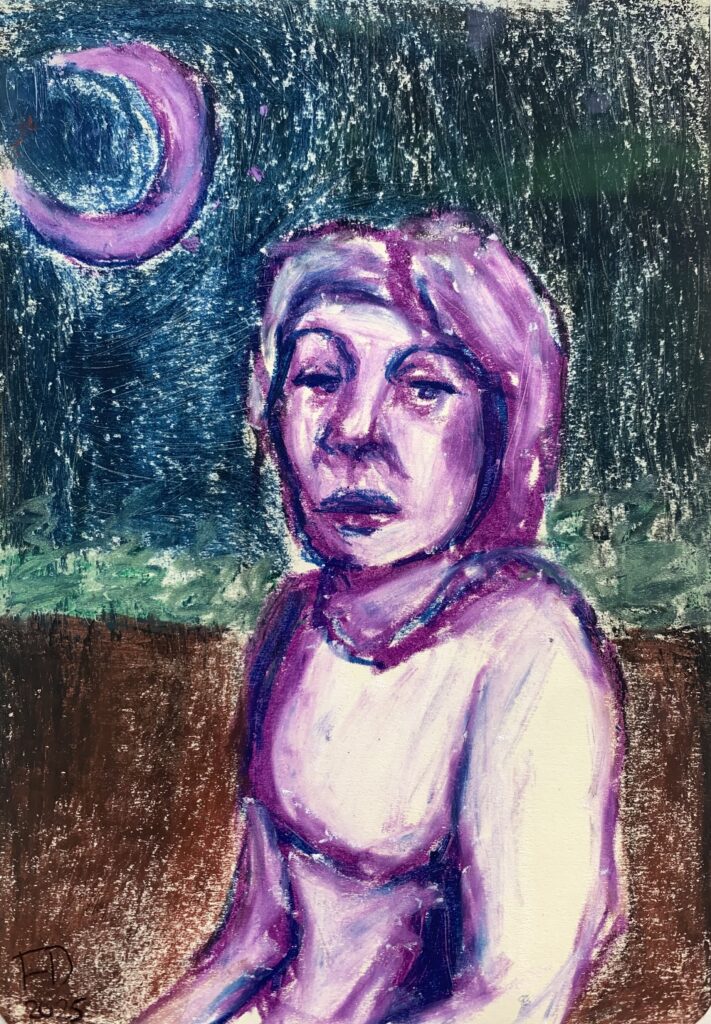 'Bij het maanlicht' - 20 x 14 cm - 2025 - oliepastelkrijt