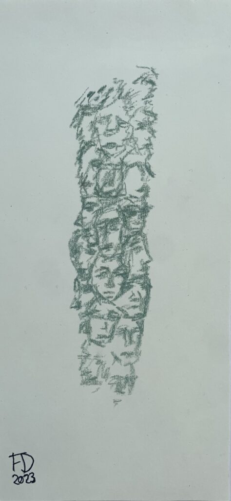 'Pilaar der uitdrukkingen' - 25 x 11,5 cm - 2023 - oliepastelkrijt (Verkocht)