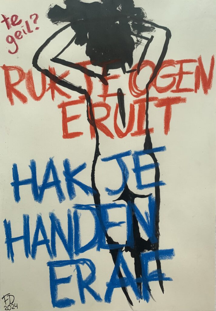 'Te geil?' - 29 x 20 cm - 2024 - Oost-Indische inkt & oliepastelkrijt