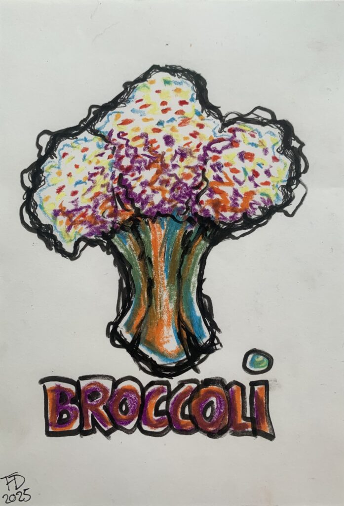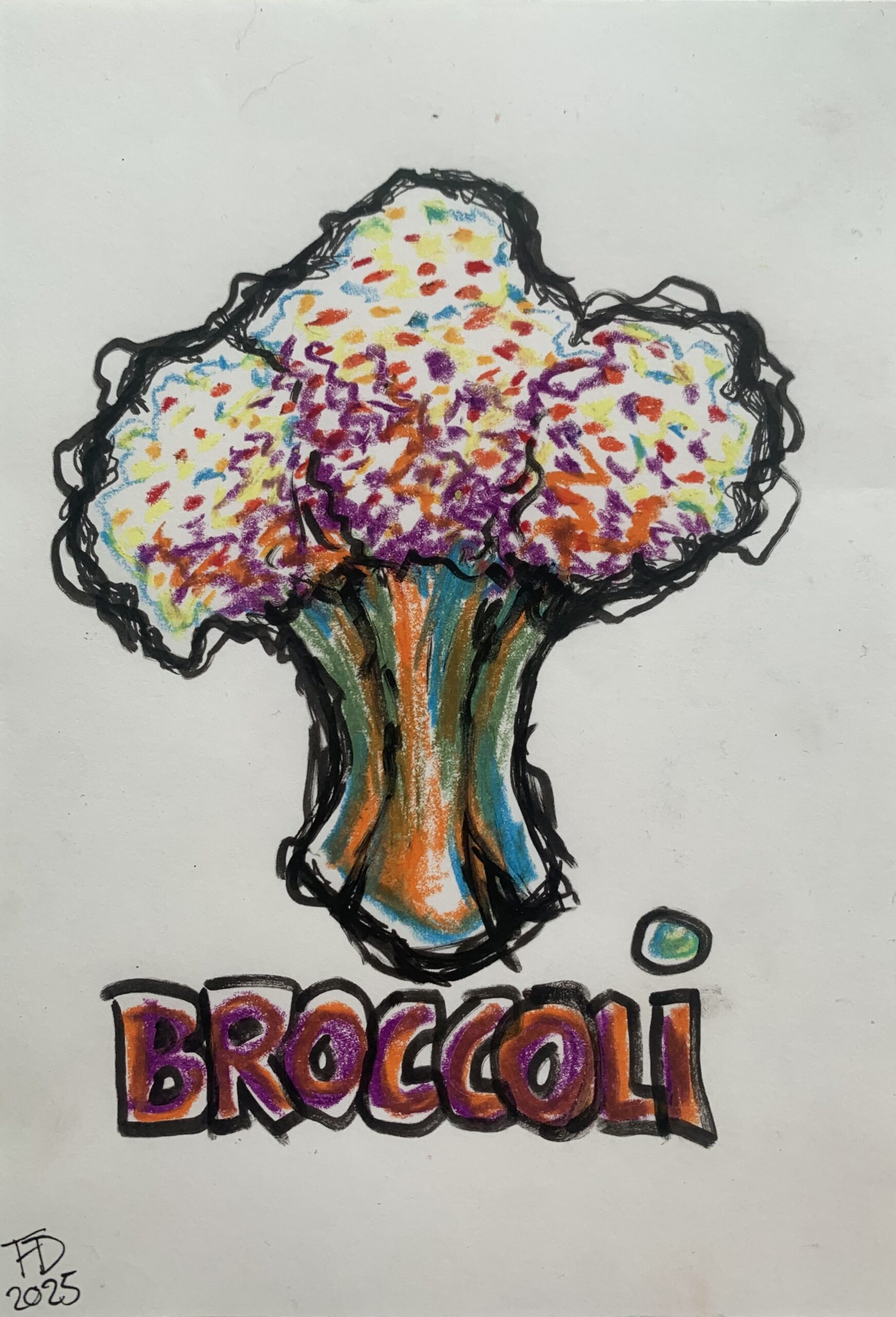 'Broccoli' - 18,5 x 13 cm - 2025 - oliepastelkrijt, pen & stift