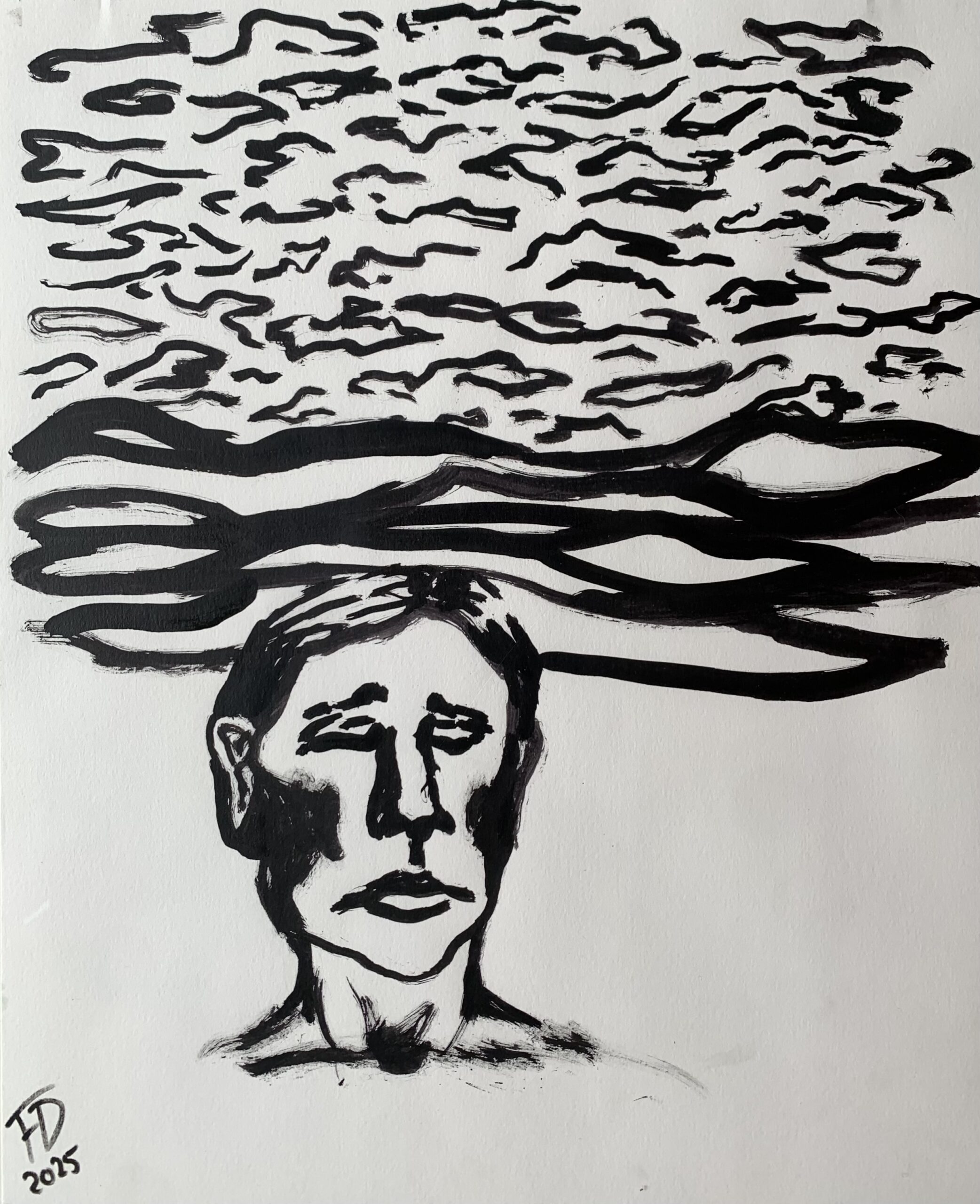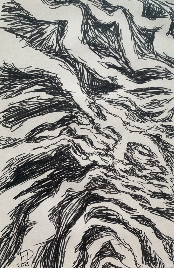 'Gedachtegolf' - 34 x 28 cm - 2025 - Oost-Indische inkt