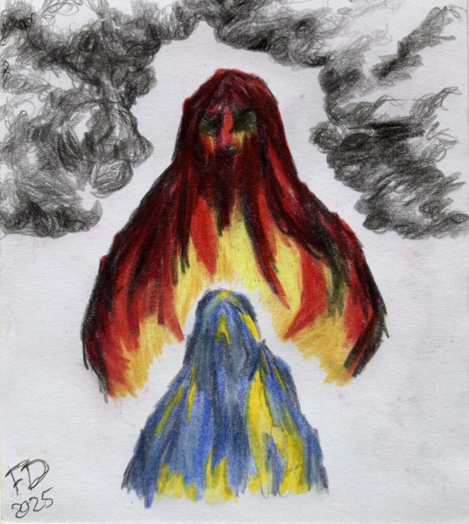 'De waarschuwing' - 10 x 9 cm - 2025 - kleurpotlood