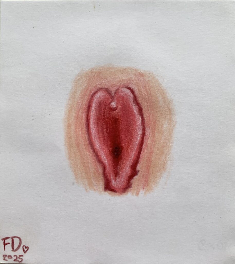 'Hartjesvulva' - 10 x 9 cm - 2025 - kleurpotlood
