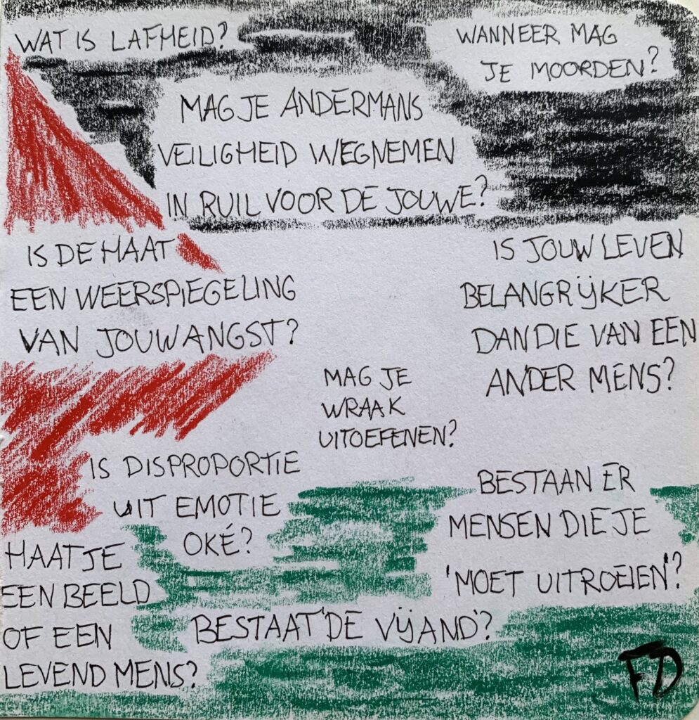 'Free Palestina' - 11,5 x 11,5 cm - 2025 - aquarelkrijt & pen