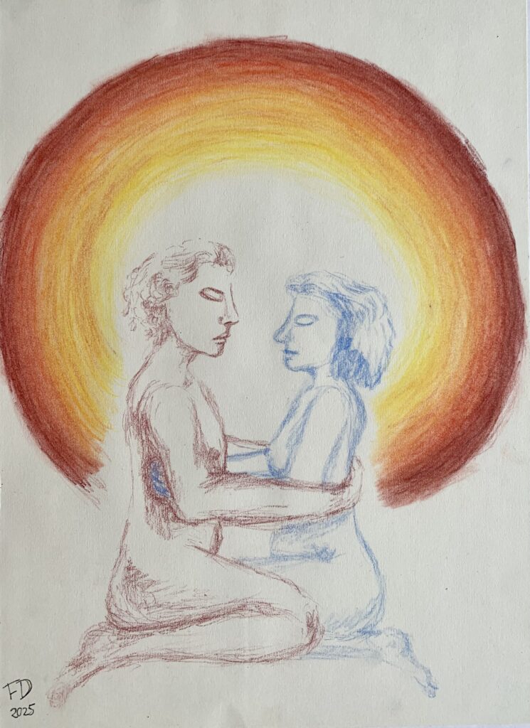 'Samenkomst' - 28 x 20 cm - 2025 - pastelkrijtpotlood