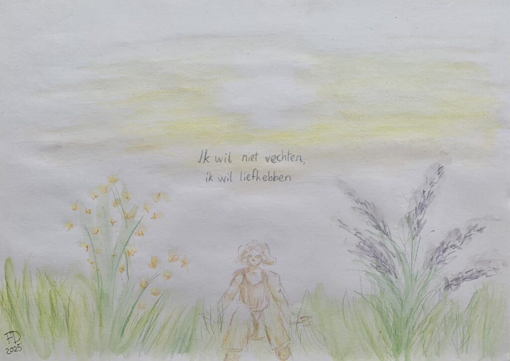 'Ik wil niet vechten, ik wil liefhebben' - 21 x 29,5 cm - 2025 - aquarelpotlood