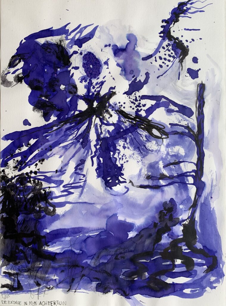 'De extase in de achtertuin' - 41 x 29,5 cm - 2025 - ecoline, Oost-Indische inkt & pen